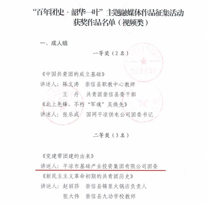 2022-04-28近日,在市委宣傳部、市委網(wǎng)信辦、市教育局、團市委、市文聯(lián)、市廣播電視臺、市少工委聯(lián)合開展的“百年團史·韶華一葉”主題融媒體作品征集活動中,市產(chǎn)投集團團委錄制的“紅色輕騎兵”講團史《黨建帶團建的由來》微視頻,喜獲視頻類二等獎。近年來,市產(chǎn)投集團團委在公